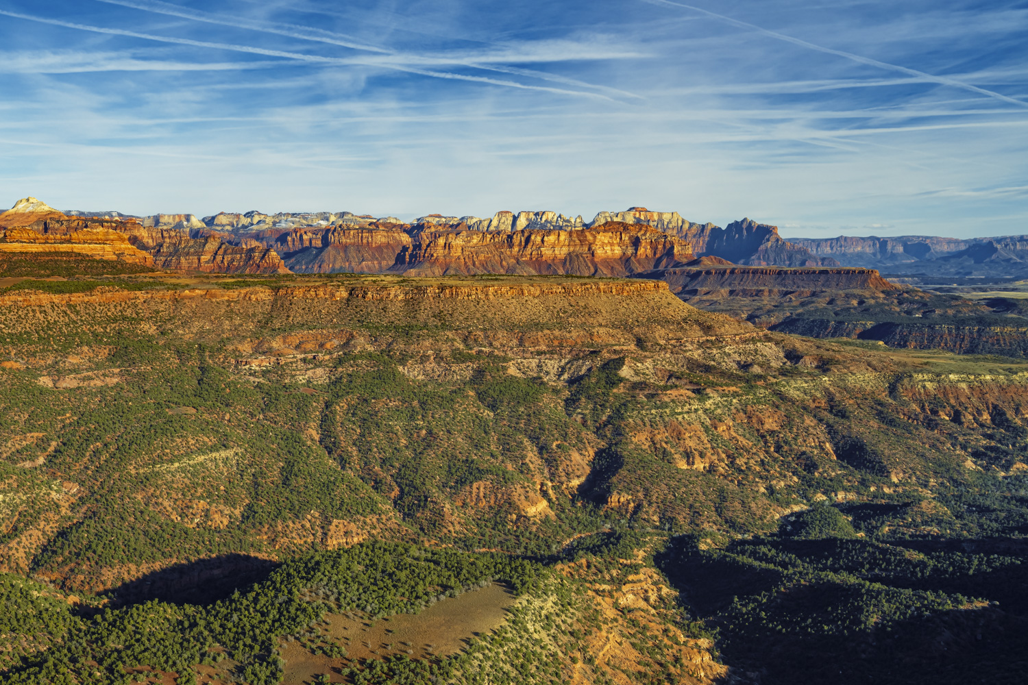 Smith Mesa is another must-see location from the sky. This massive plateau offers a striking contrast to Zion’s rugged cliffs, with sweeping desert landscapes that extend as far as the eye can see. In spring, Smith Mesa is particularly beautiful, as wildflowers dot the valley floor, creating an incredible aerial spectacle.