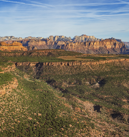 Our 15 mile Zion National Park helicopter flight allows you to take in beautiful scenery of the Virgin River Valley with amazing panoramic views of West Temple and the large Crater Hill Volcano located within the park!